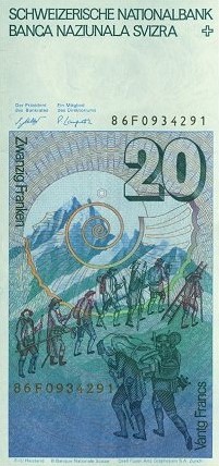 | (Saussure on the 20 Swiss Bank Note and one of his expeditions in the Alps.) |