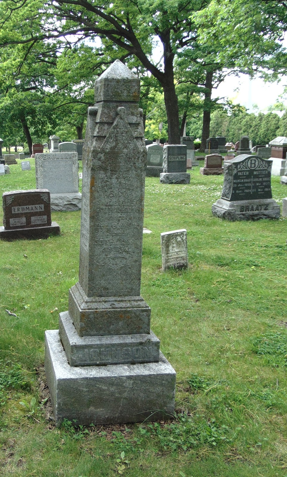 Also, Martin kept popping up in the Find-a Grave database for the Woodlawn Cemetery in Green Bay. According to a friendly Find-a-Grave user local to the area, there is no grave marker for Martin Woodruff, but the designated spot is shared with a tombstone for the Johnson family. What is his connection to the Johnsons? Are they relatives?