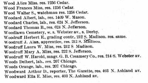 After scouring the Green Bay city directory from 1898, I found no mention of Martin Woodruff. I decided to see if I could find a neighbor of Martin Woodruff. I had a sneaking suspicion that he was in the census somewhere, but something was preventing me from easily searching for him by name. Perhaps his name was misspelled, or the transcriber made an error. So I started flipping through the pages of the directory for anyone living on Maple Ave, who would have been on the same block.
