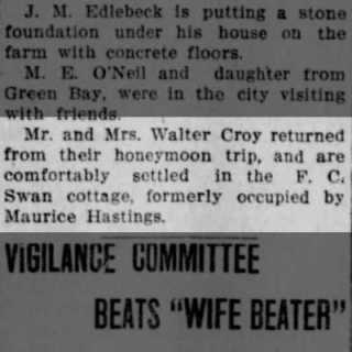 Meanwhile, Eva’s sisters, Blanche and Ruby have become teachers. Rose Peshek-Jolley was a graduate of the Oshkosh Normal school for teachers. Perhaps she influenced her nieces to also become teachers. In 1912, Blanche marries Walter Croy, a telephone operator, and eventually moves to Milwaukee.