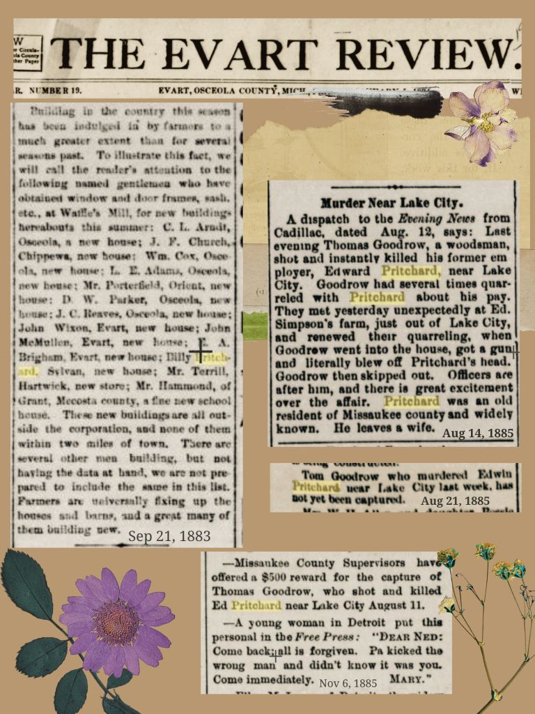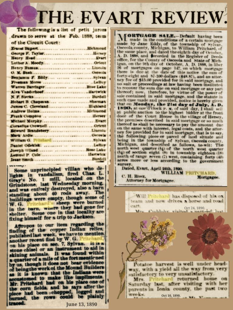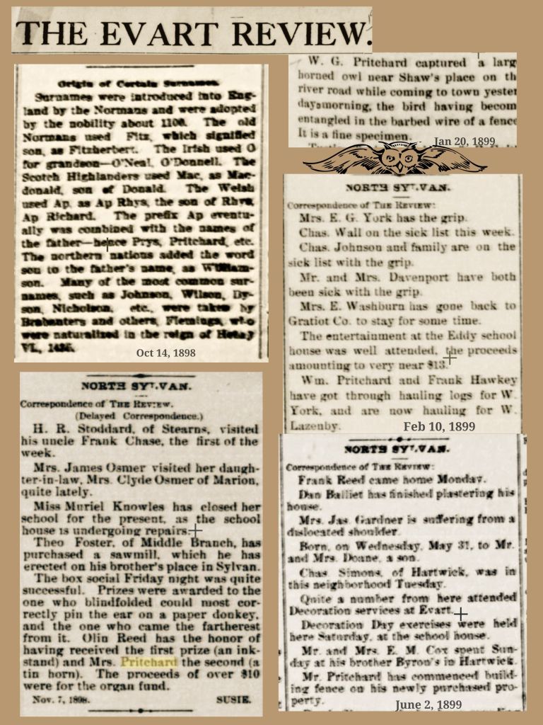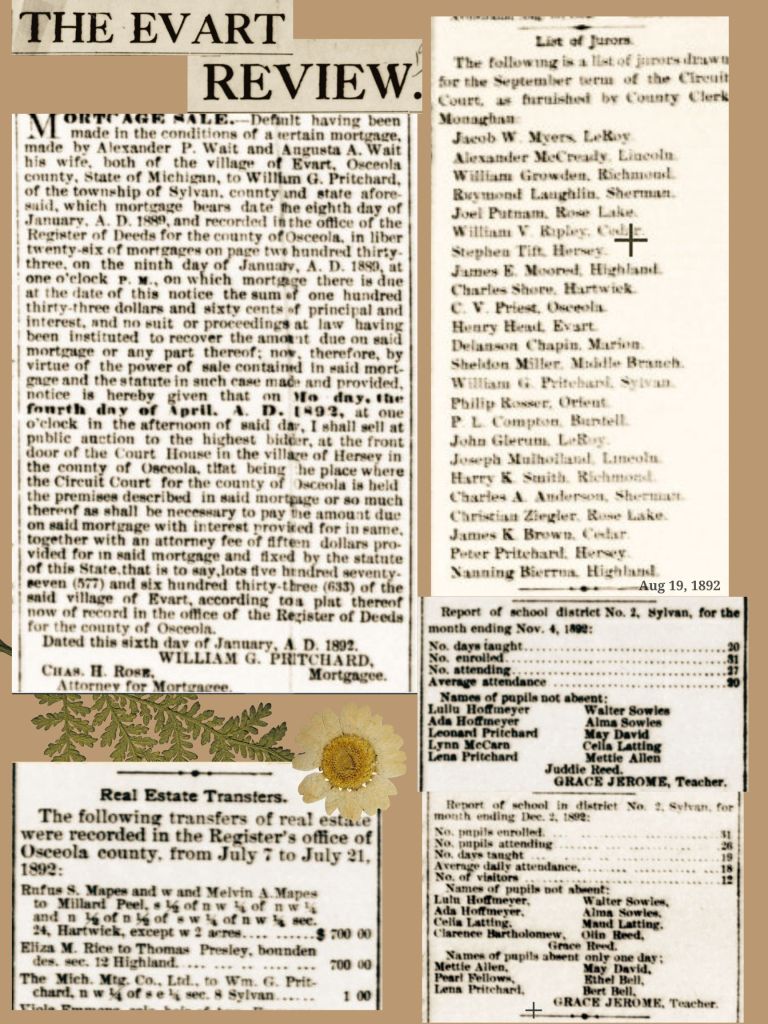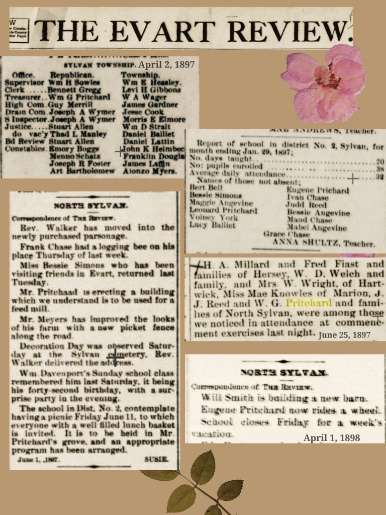 The Pritchards in the Evart Review: Clippings from 1883 – 1899